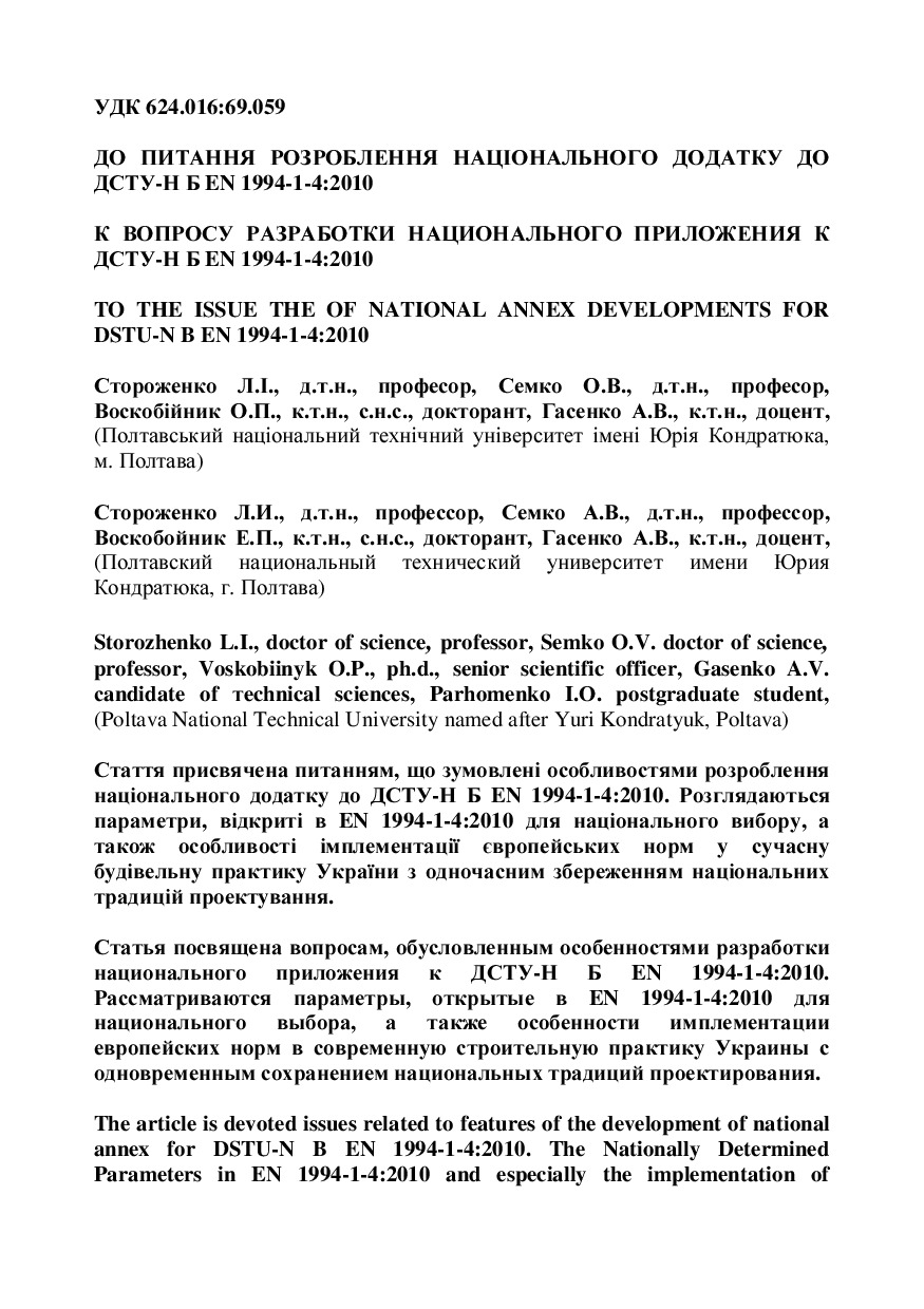 До питання розроблення національного додатку до ДСТУ-Н Б EN 1994-1-4:2010