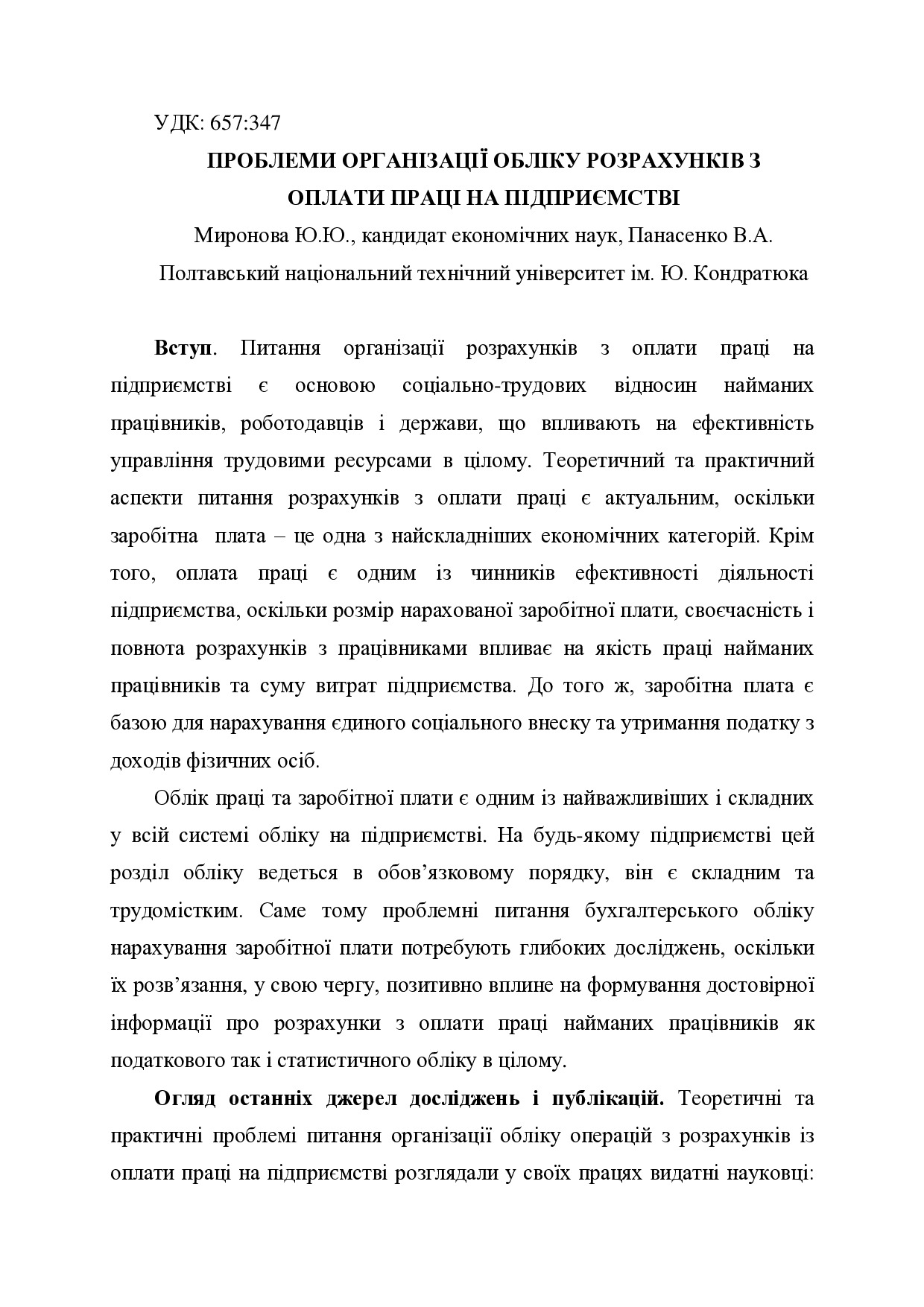 Проблеми організації обліку розрахунків з оплати праці на підприємстві