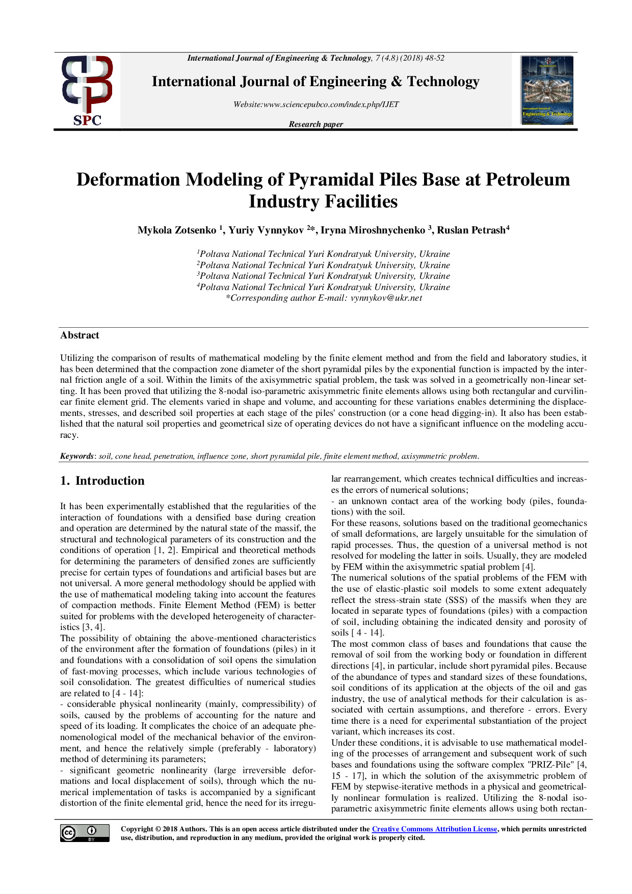 Deformation modeling of pyramidal piles base at petroleum industry facilities