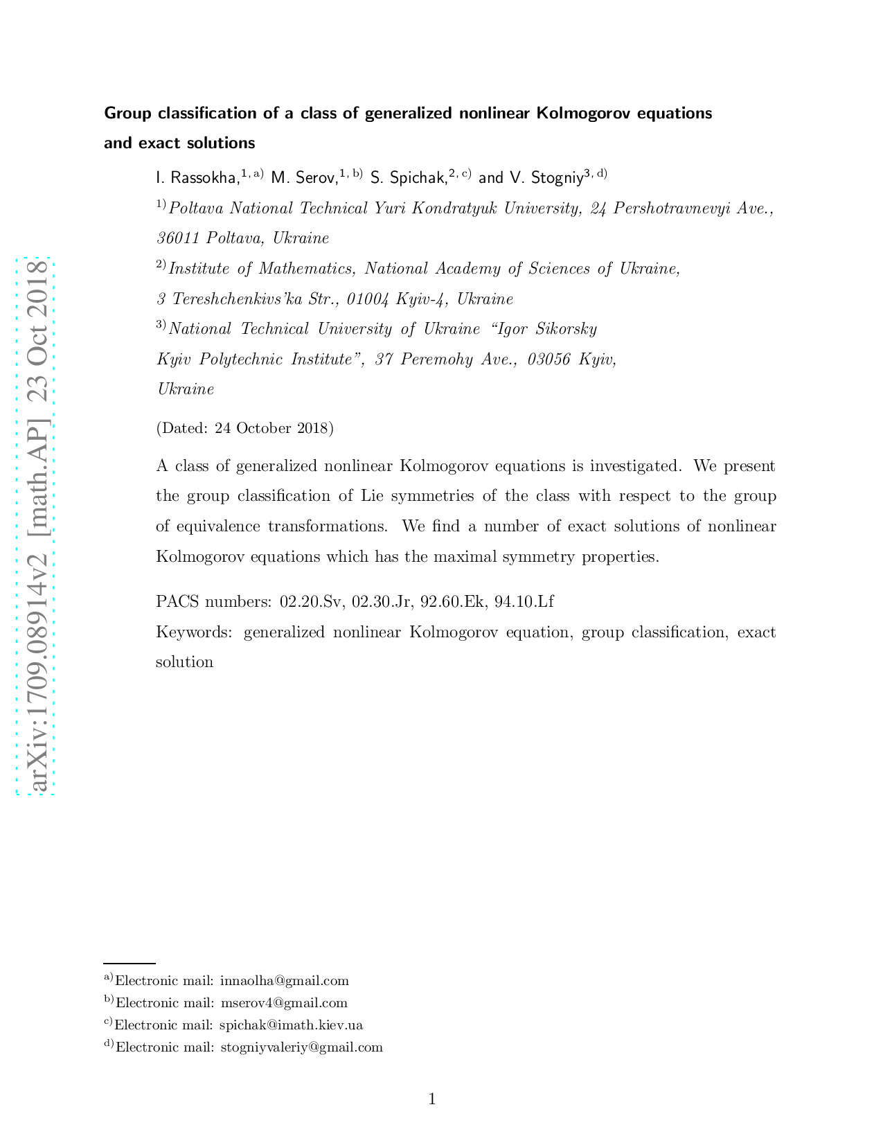Group classification of a class of generalized nonlinear Kolmogorov equations and exact solutions