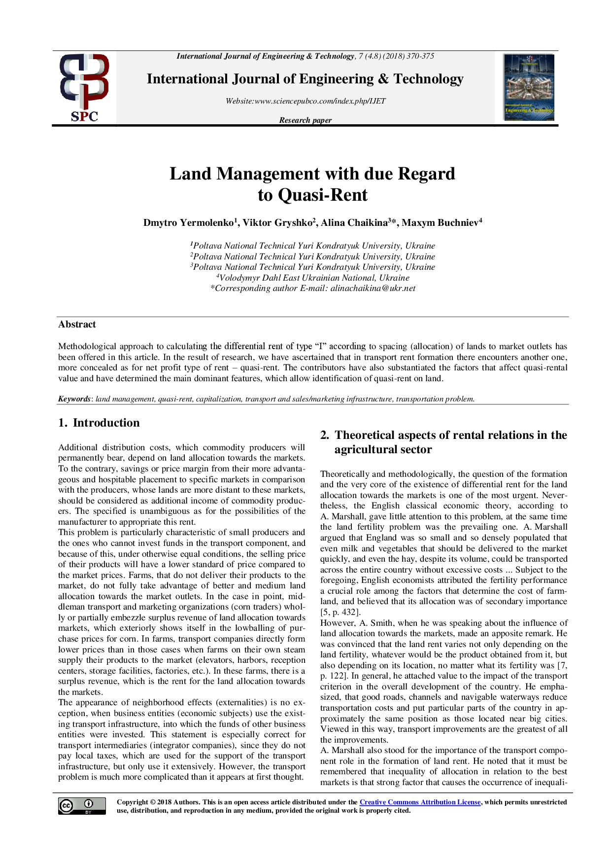 Land management with due regard to Quasi-Rent