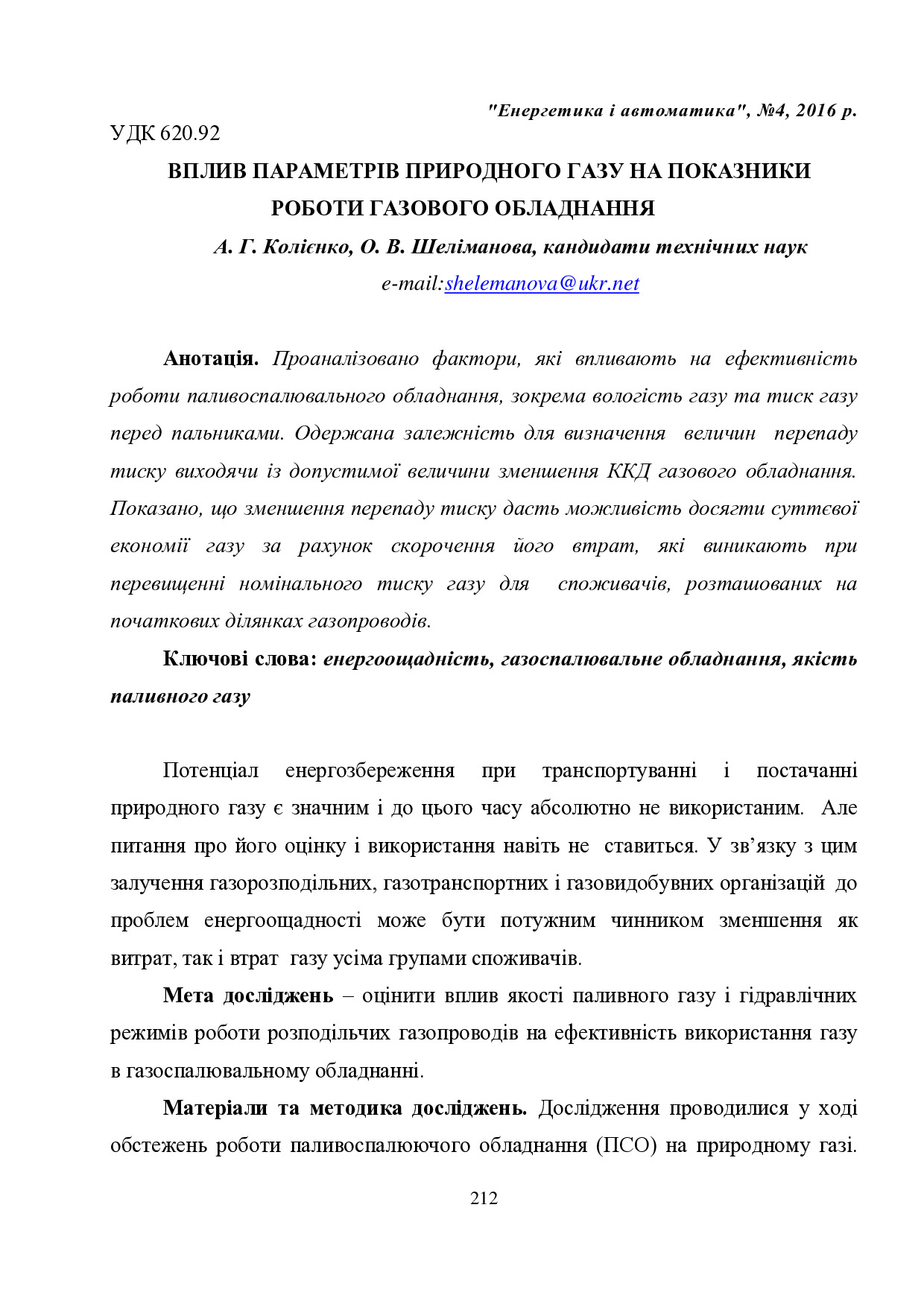 Вплив параметрів природного газу на показники роботи газового обладнання