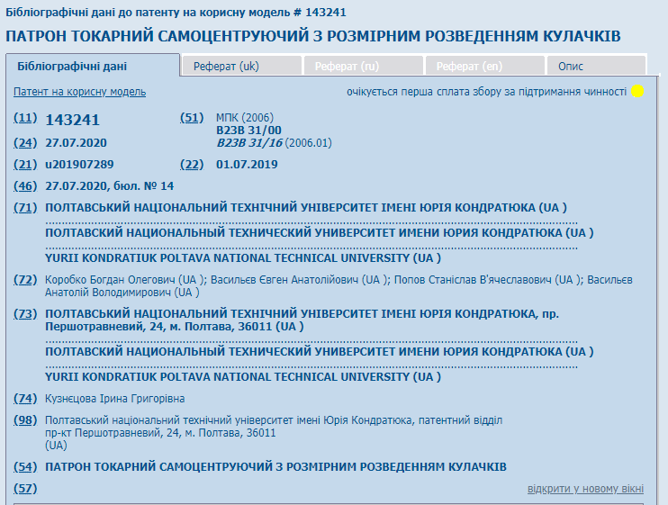 Патрон токарний самоцентруючий з розмірним розведенням кулачків