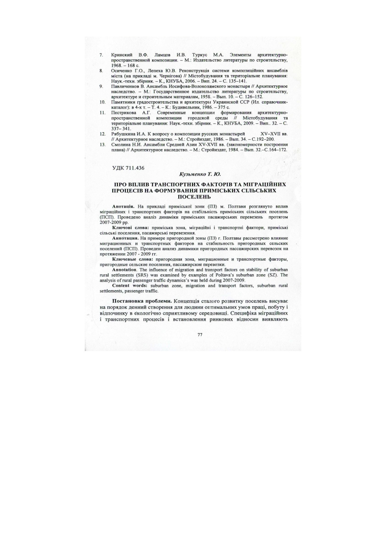 Про вплив транспортних факторів та міграійних процесів на формування приміських сільських поселень