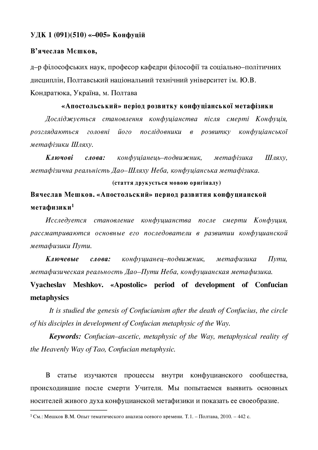 "Апостольський" період розвитку конфуціанської метафізики