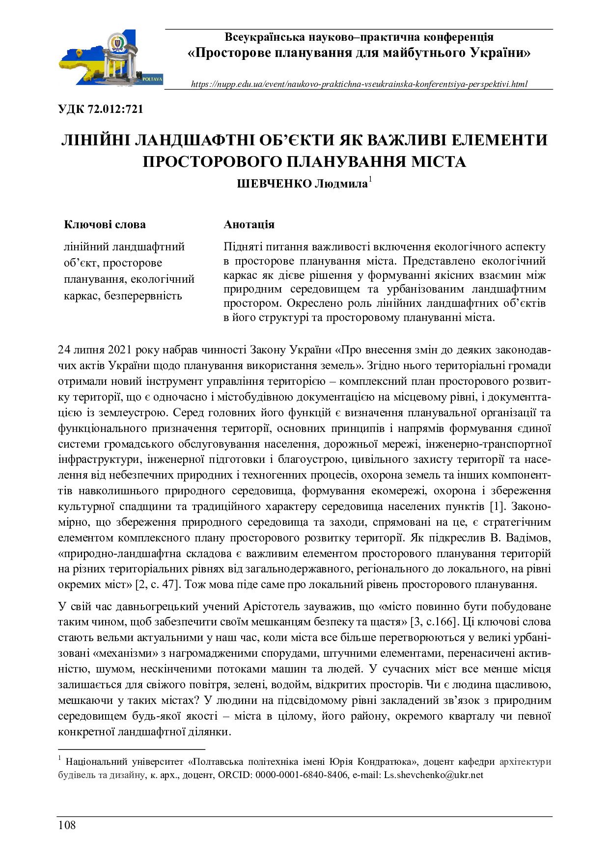 Лінійні ландшафтні об’єкти як важливі елементи просторового планування міста