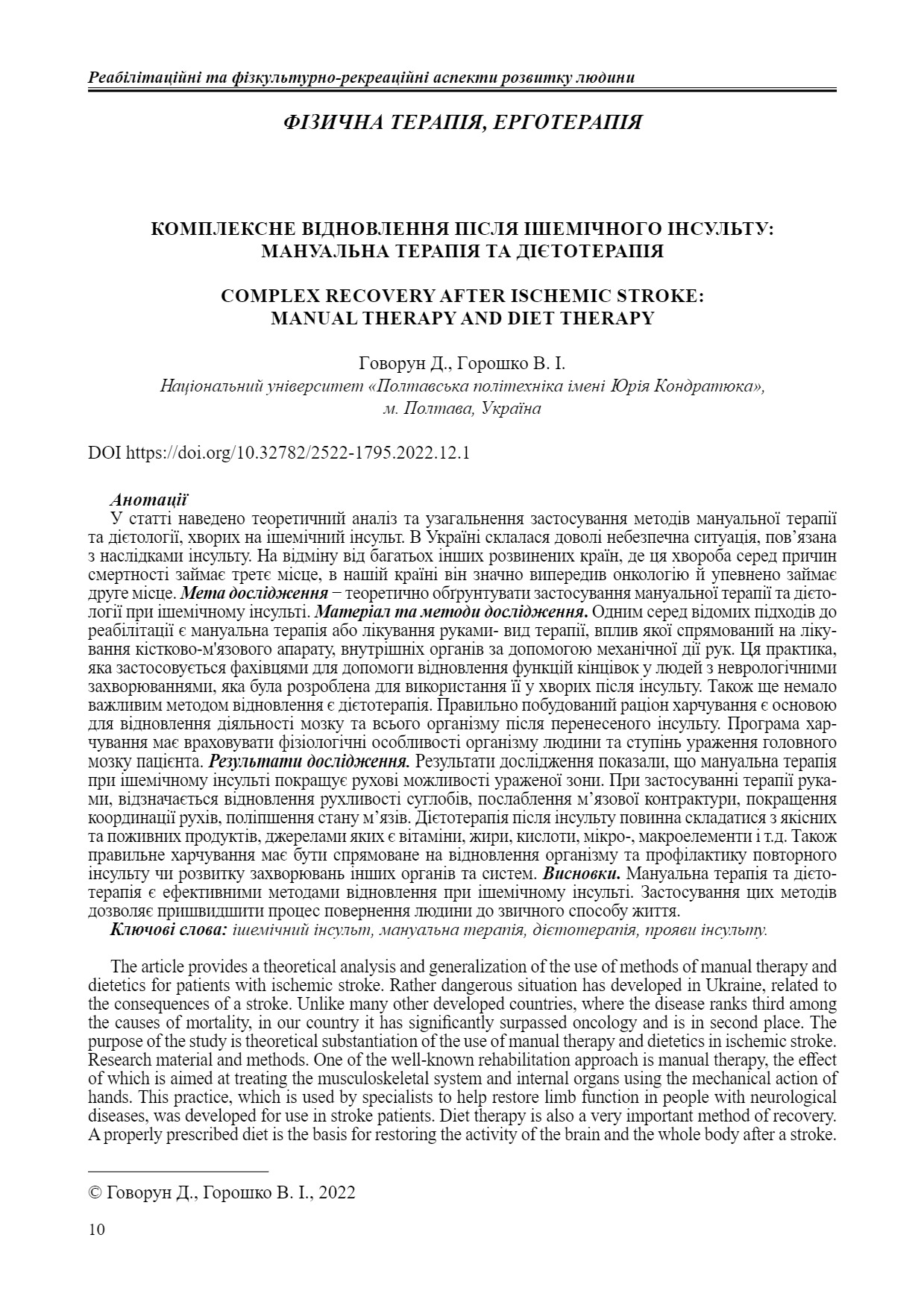 Комплексне відновлення після ішемічного інсульту: мануальна терапія та дієтотерапія