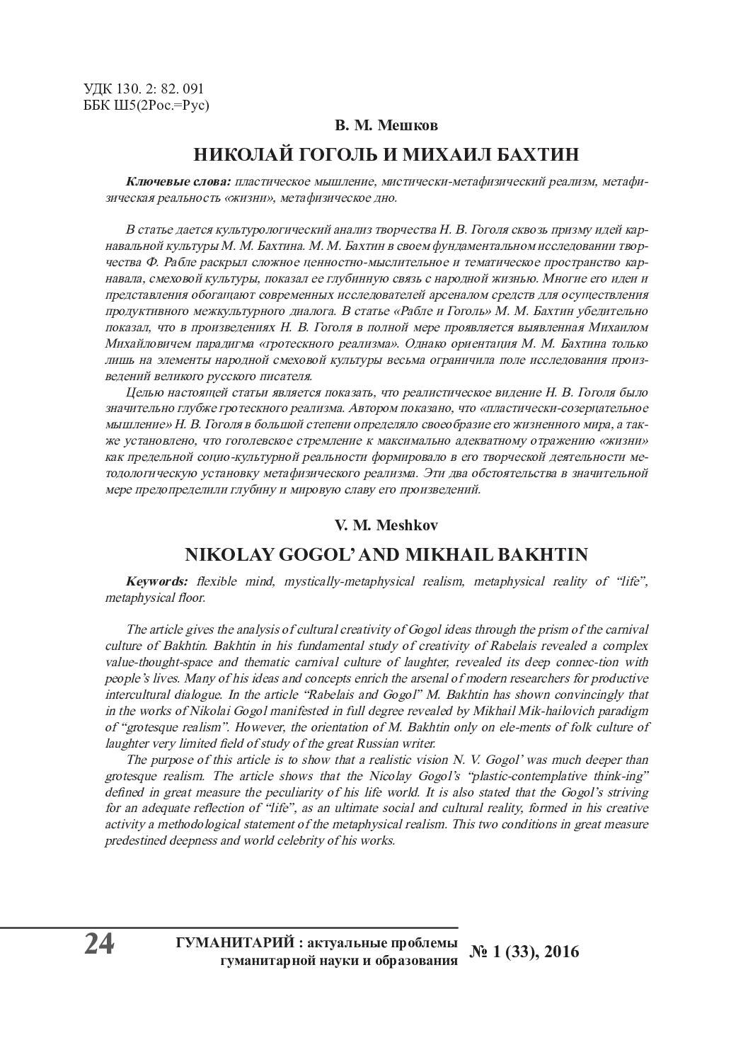 Николай Гоголь и Михаил Бахтин