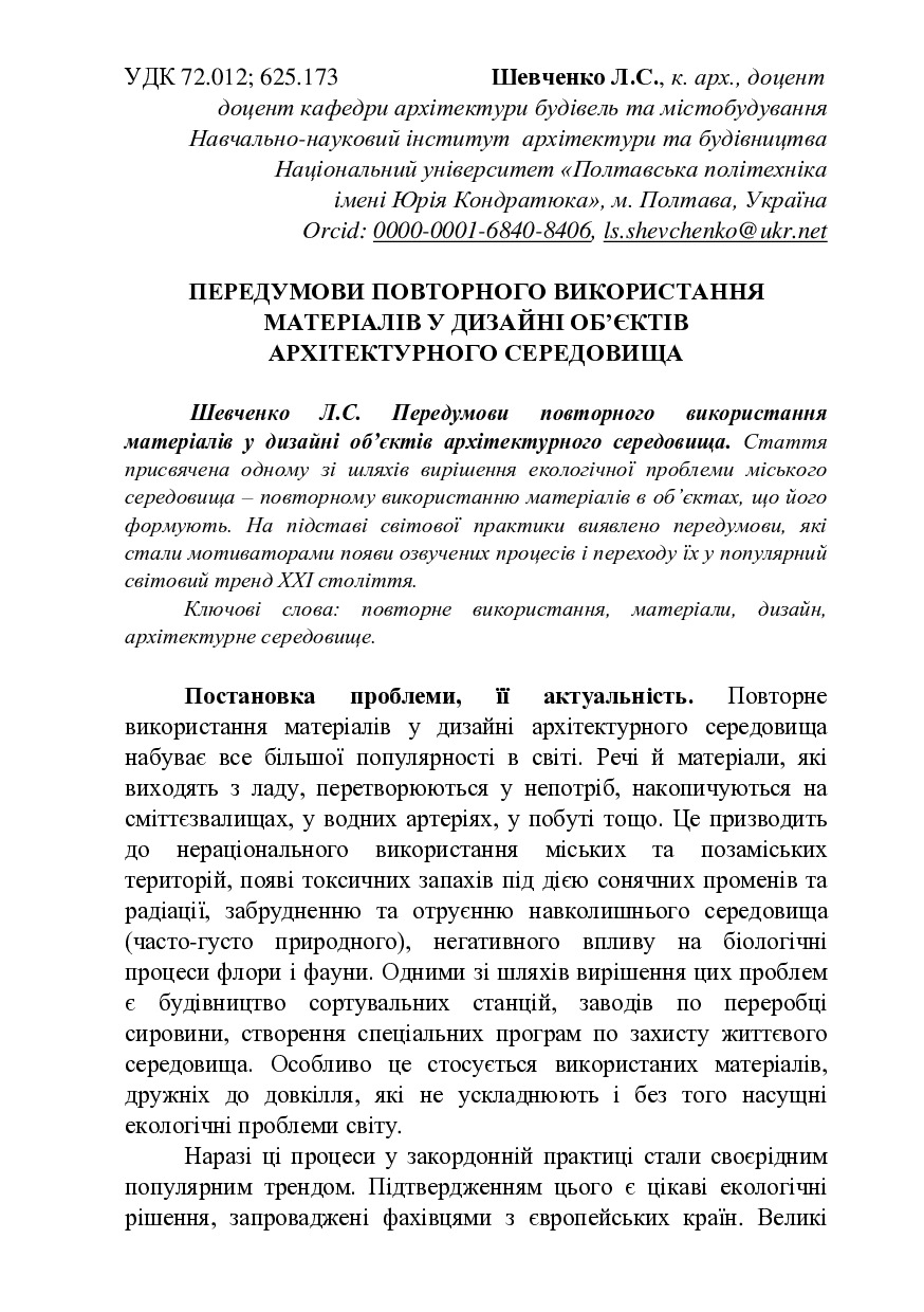 Передумови повторного використання матеріалів у дизайні об’єктів архітектурного середовища
