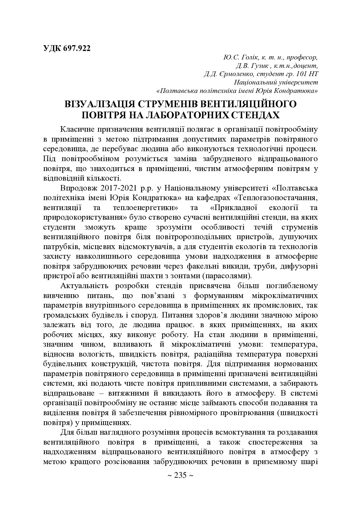 Візуалізація струменів вентиляційного повітря на лабораторних стендах