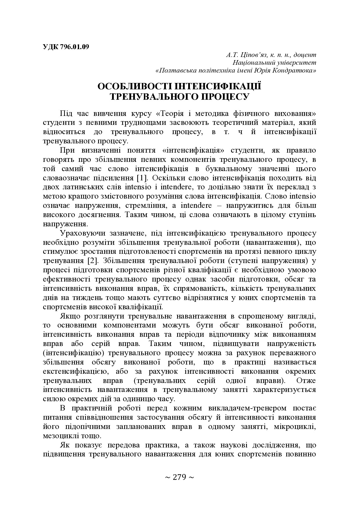 Особливості інтенсифікації тренувального процесу