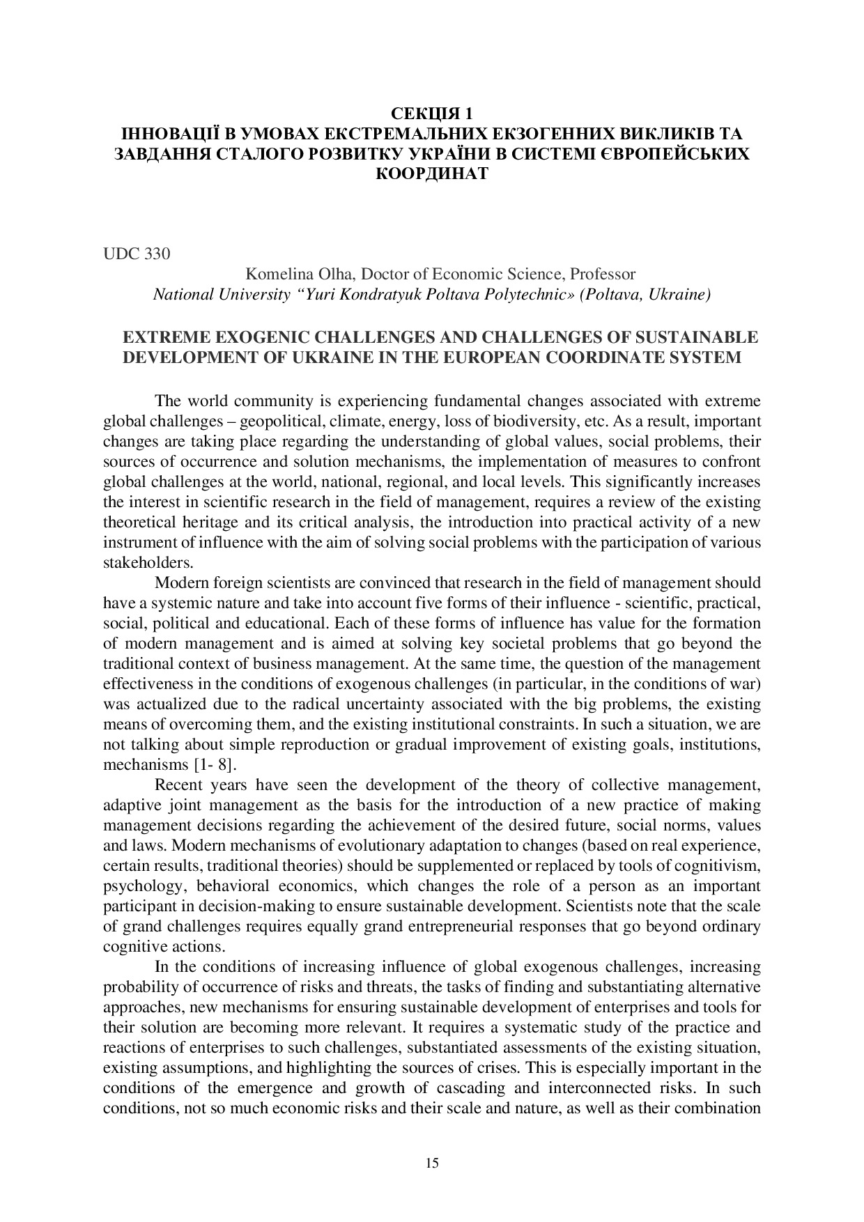 Extreme exogenic challenges and challenges of sustainable development of Ukraine in the European coordinate system