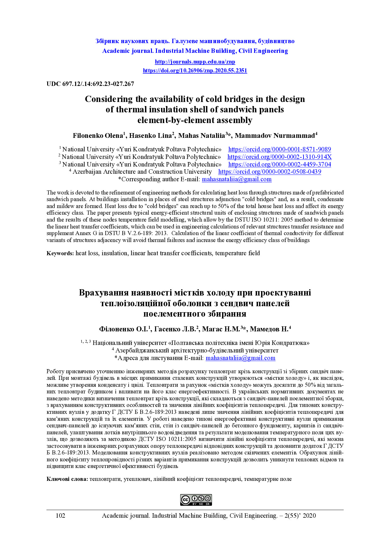 Considering the availability of cold bridges in the design of thermal insulation shell of sandwich panels element-by-element assembly