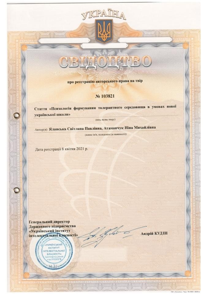 Свідоцтво про реєстрацію авторського права № 103821