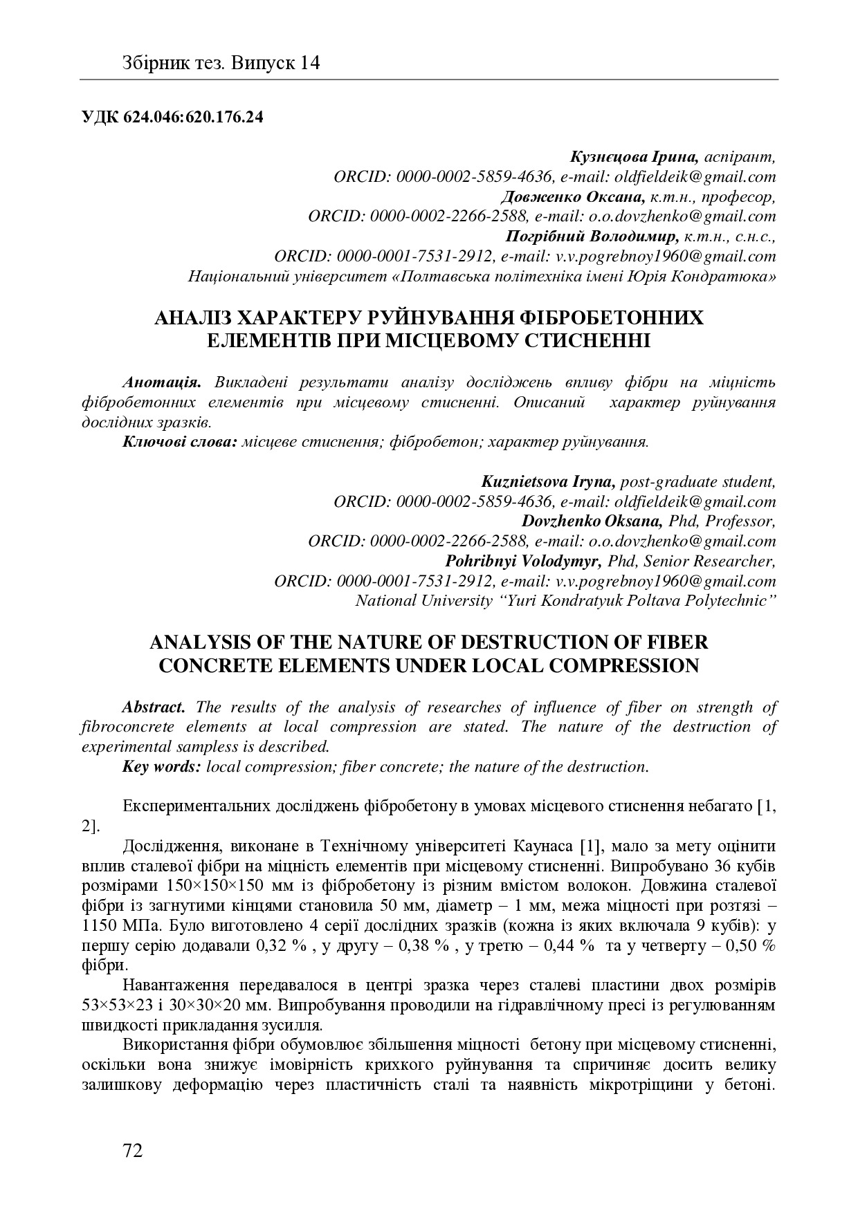 Аналіз характеру руйнування фібробетонних елементів при місцевому стисненні
