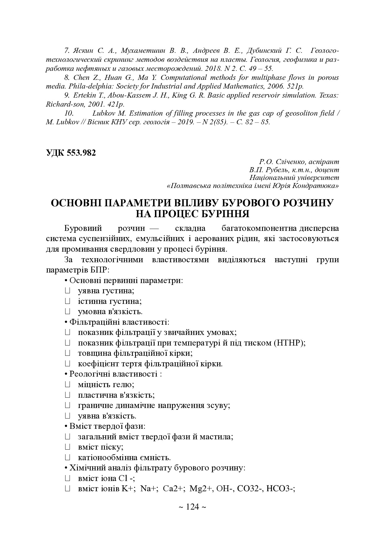 Основні параметри впливу бурового розчину на процес буріння