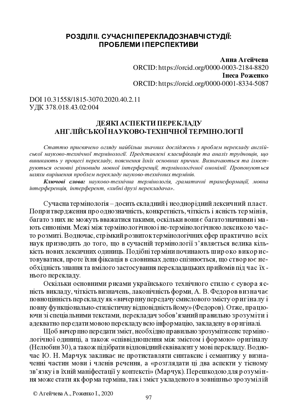 Деякі аспекти перекладу англійської науково-технічної термінології