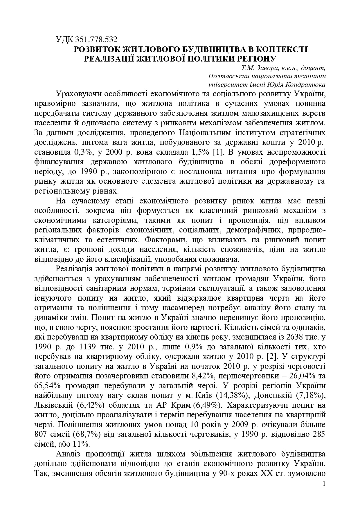 Розвиток житлового будівництва в контексті реалізаціі житлової політики регіону
