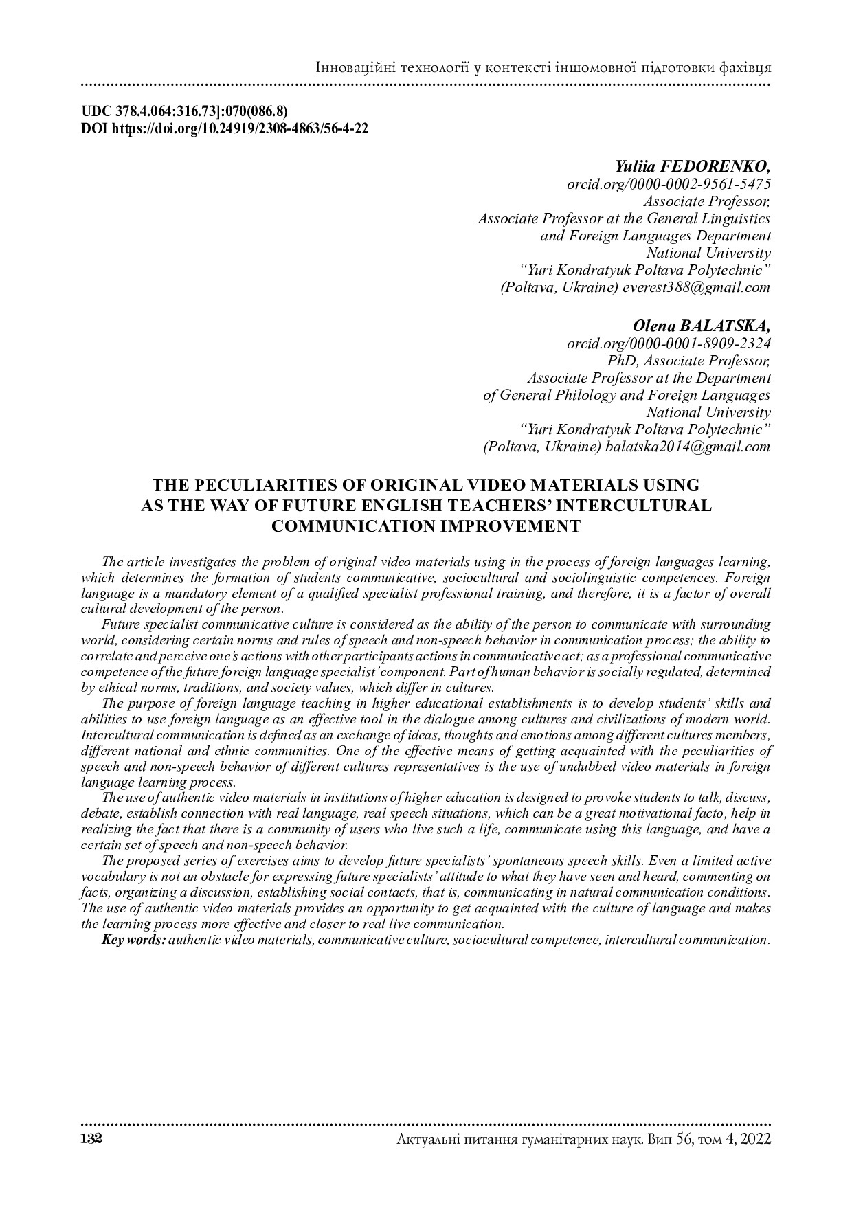 The peculiarities of original video materials using as the way of future english teachers’ intercultural communication improvement