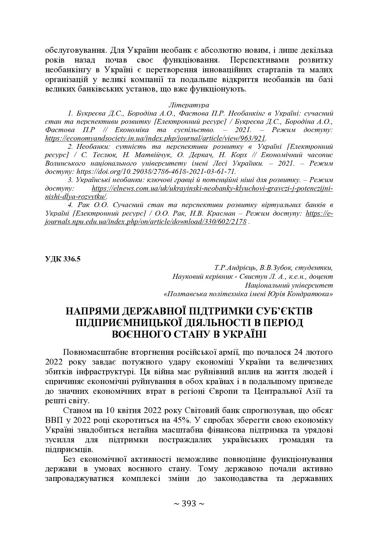 Напрями державної підтримки суб’єктів підприємницької діяльності в період воєнного стану в Україні