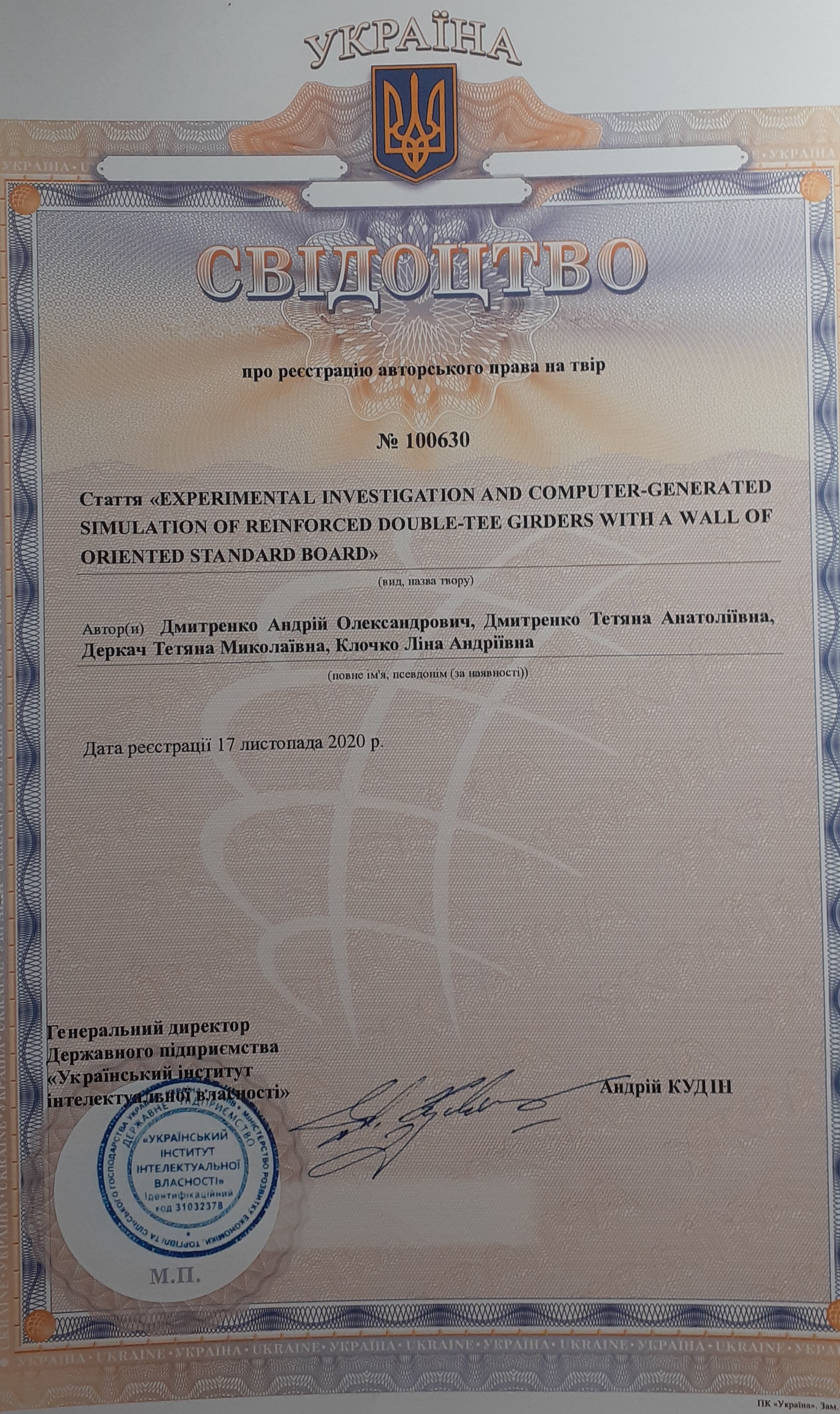Свідоцтво про реєстрацію авторського права № 100630 на твір
