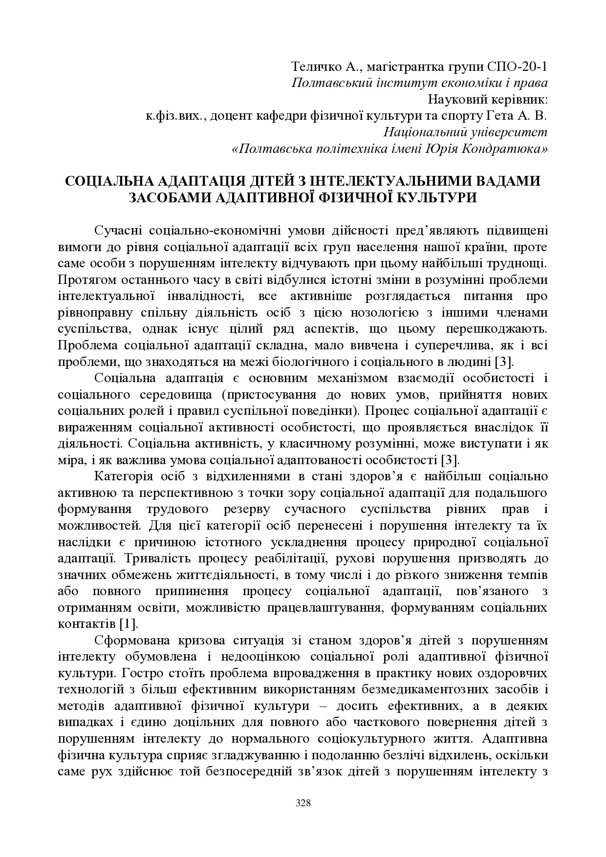 Соціальна адаптація дітей з інтелектуальними вадами засобами адаптивної фізичної культури