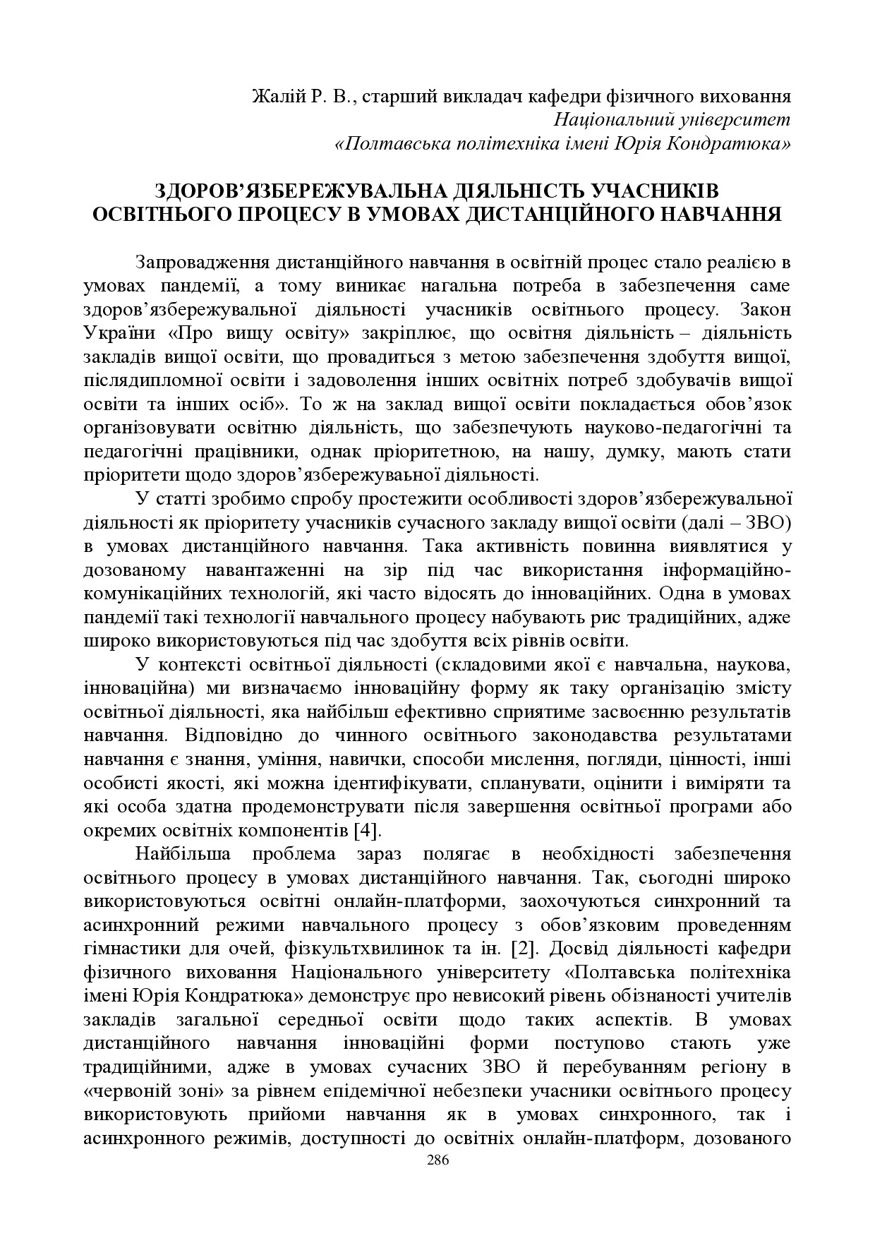 Здоров’язбережувальна діяльність учасників освітнього процесу в умовах дистанційного навчання