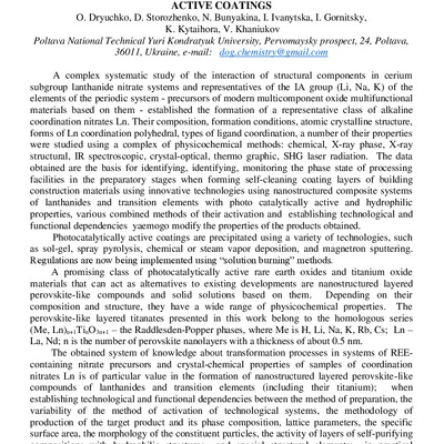 Стаття 2022/05/26Фотокаталітично-активні матеріали на основі наношаруватих перовскитоподібних титанатів лантаноїдів у комплексах формування мікроклімату приміщень