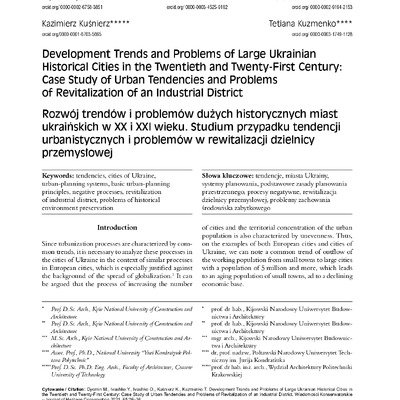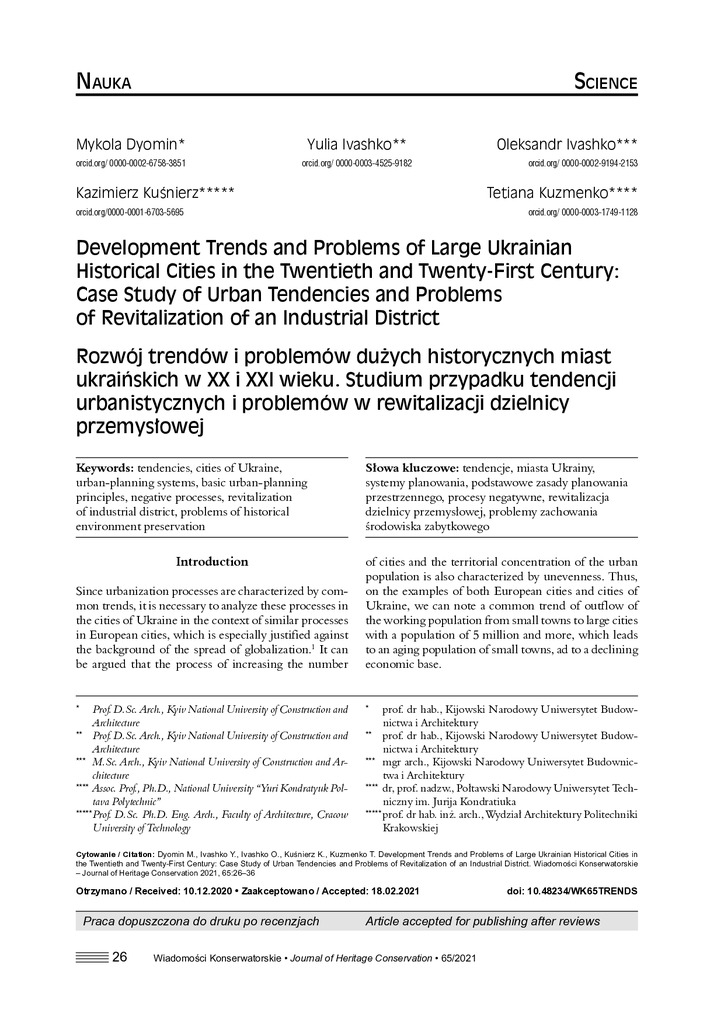 Development Trends and Problems of Large Ukrainian Historical Cities in the Twentieth and Twenty-First Century: Case Study of Urban Tendencies and Problems of Revitalization of an Industrial District