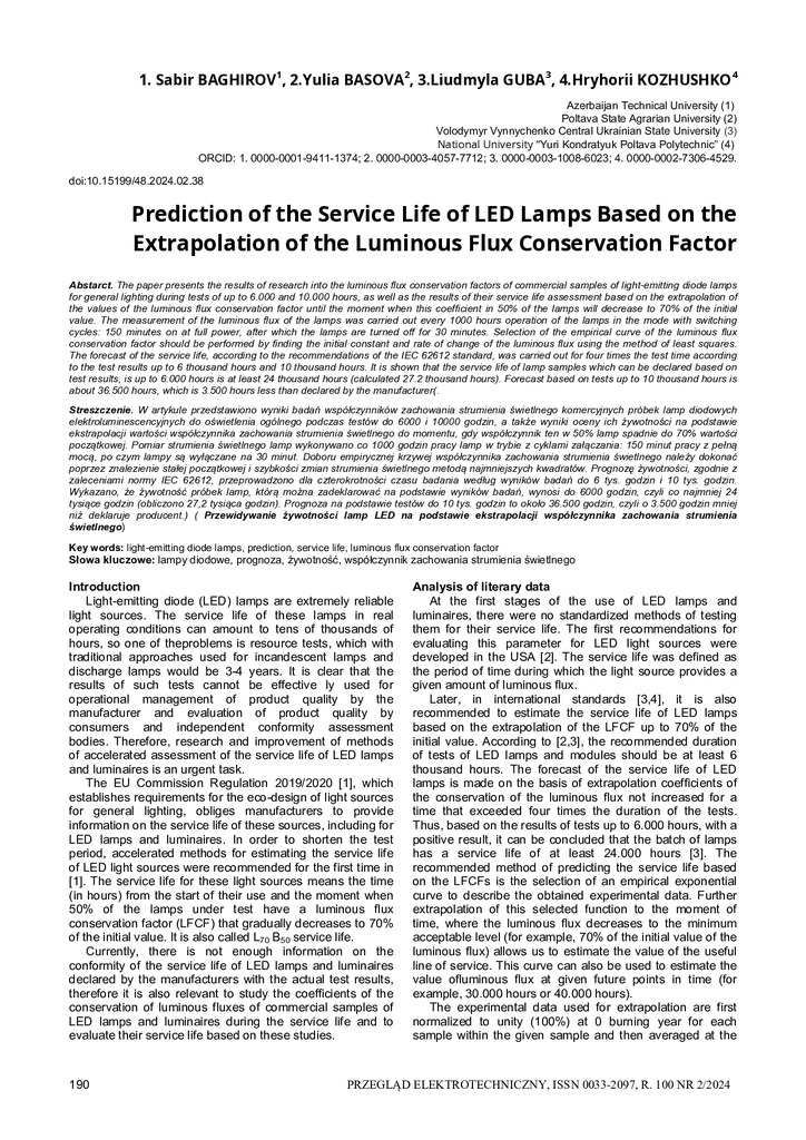 Стаття 2025/12/15Prediction of the service life of LED lamps based on the extrapolation of the luminous flux conservation factor