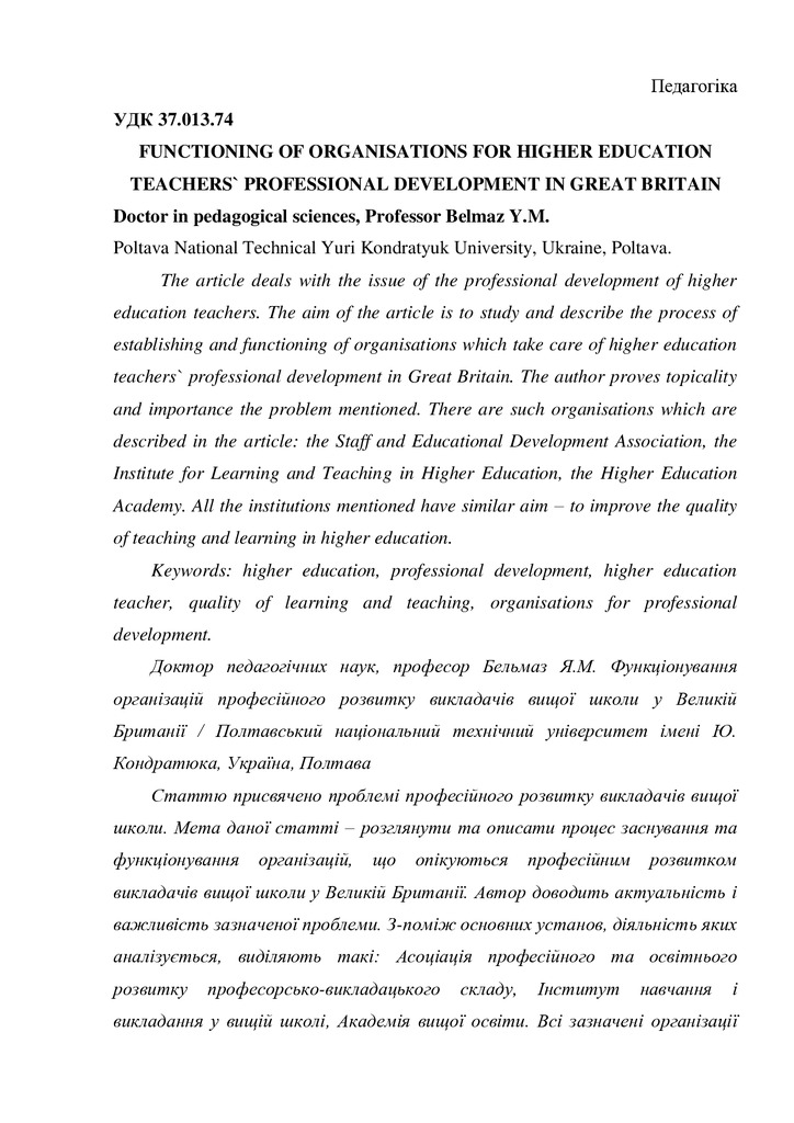Functioning of organizations for higher education teachers’ professional development in Great Britain