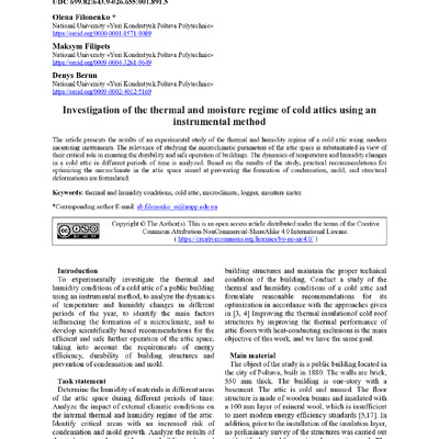 2025/05/27Дослідження тепло-вологісного режиму холодних горищ на об’єкті, який експлуатується
