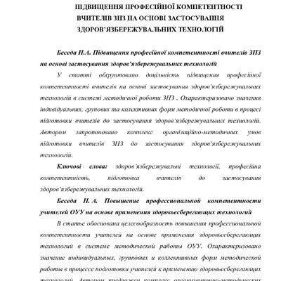 2020/04/07Підвищення професійної компетентності вчителів ЗНЗ на основі застосування здоров’язбережувальних технологій