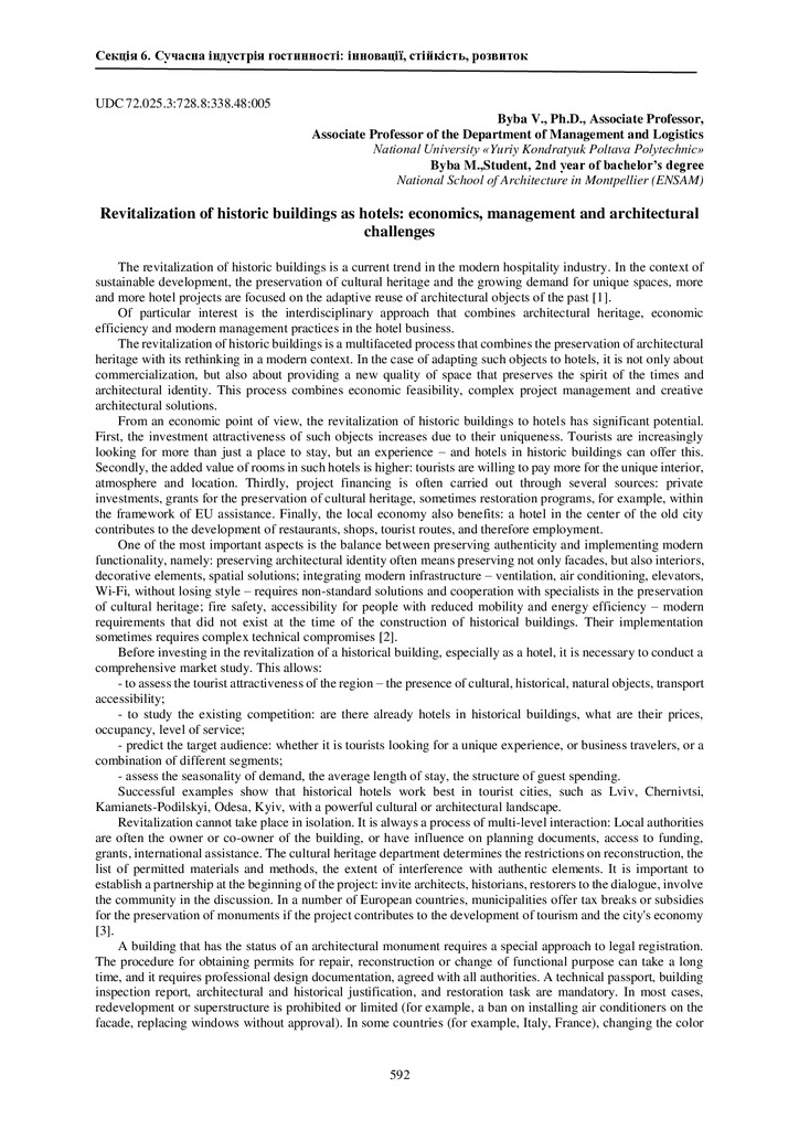 Revitalization of historic buildings as hotels: economics, management and architectural challenges