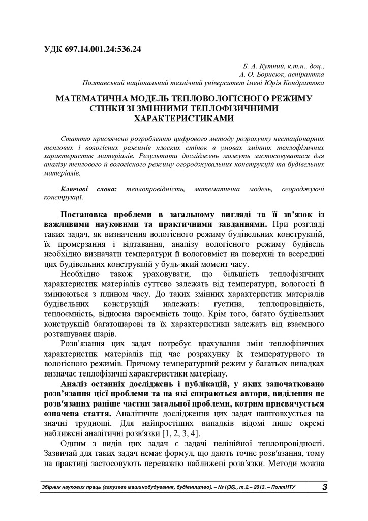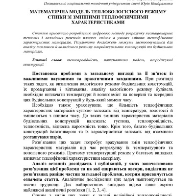Математична модель тепловологісного режиму стінки зі змінними теплофізичними характеристиками