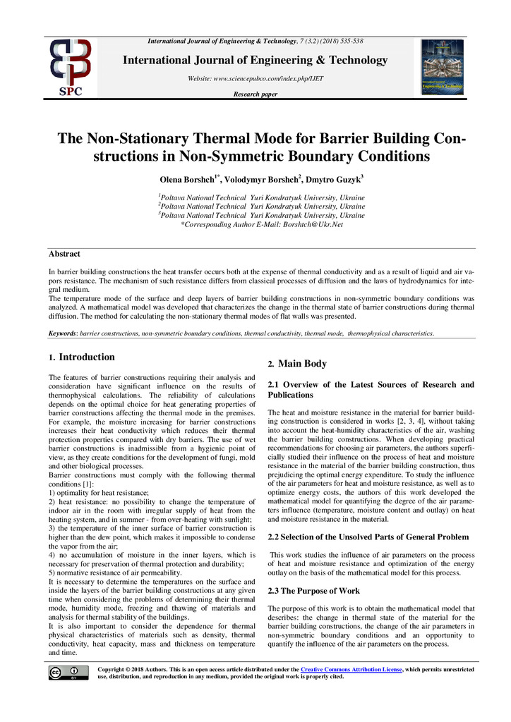 2018/10/09The non-stationary thermal mode for barrier building constructions in non-symmetric boundary conditions