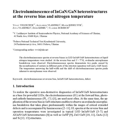 2022/02/09Electroluminescence of InGaN/GaN heterostructures at the reverse bias and nitrogen temperature