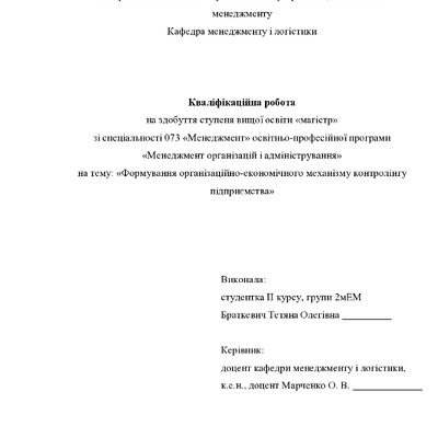 Формування організаційно-економічного механізму контролінгу підприємства