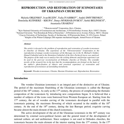 The article is devoted to the problem of reproduction and restoration of wooden iconostases in churches of Ukraine. The experience of the "Ukrrestavratsiia" Corporation in the reproductio...