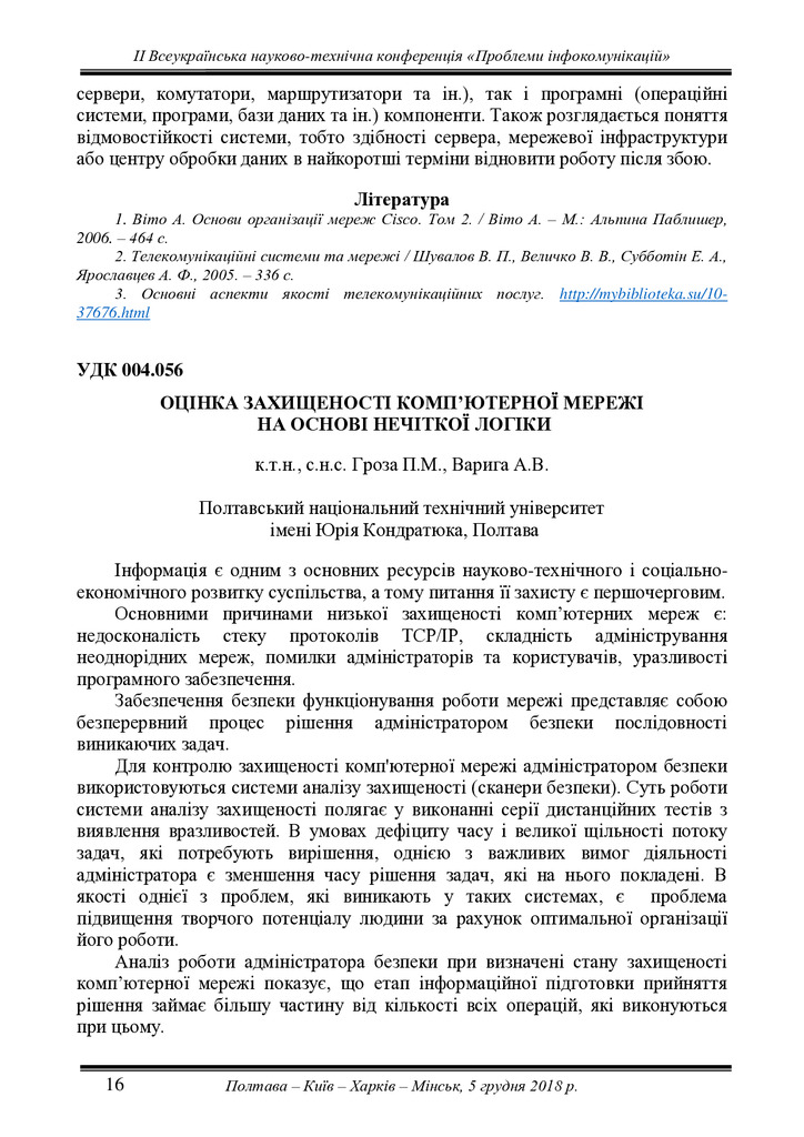 Оцінка захищеності комп’ютерної мережі на основі нечіткої логіки