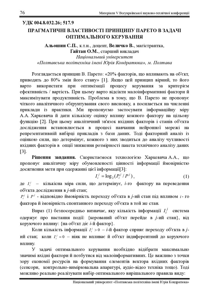 Прагматичні властивості принципу Парето в задачі оптимального керування
