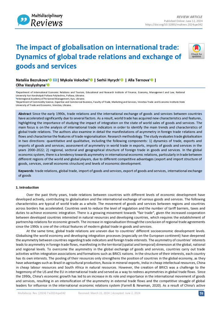 The impact of globalisation on international trade: Dynamics of global trade relations and exchange of goods and services