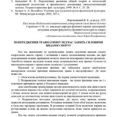 Стаття 2025/12/18Попередження травматизму під час занять силовими видами спорту