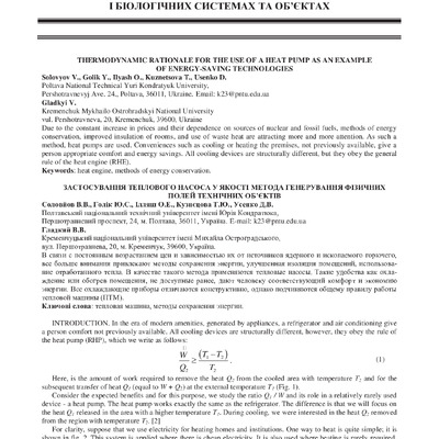 2019/12/06Thermodynamic rationale for the use of a heat pump as an example of energy-saving technologies