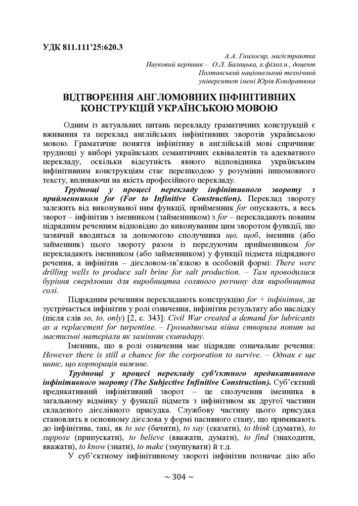 Відтворення англомовних інфінітивних конструкцій українською мовою (на основі технічних текстів у нафтогазовій справі)