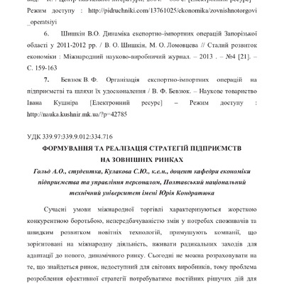 Формування та реалізація стратегій підприємств на зовнішніх ринках