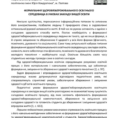 2024/12/26Health-safe educational environment as a condition for the formation of health-safe competence in students