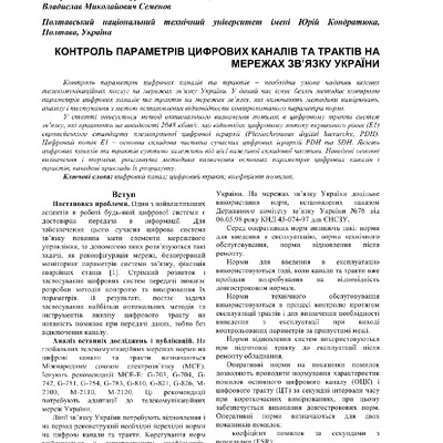 Контроль параметрів цифрових каналів та трактів на мережах зв’язку України