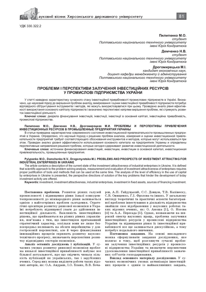Проблеми і перспективи залучення інвестиційних ресурсів у промислові підприємства України
