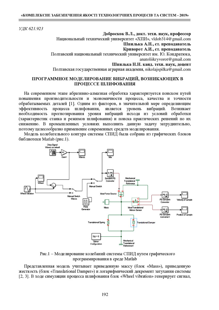 Программное моделирование вибраций, возникающих в процессе шлифования